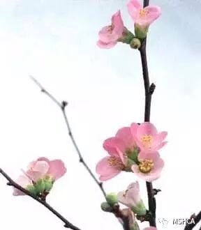 又看书又上网地研究了半天,终于明白了,我买回来的这些花原来是海棠花,名叫“贴梗海棠”,因花朵长得紧贴枝条而得名。这种海棠是长在灌木枝条上的,有刺。因为形似梅花,它也有一个俗名叫“刺梅”。